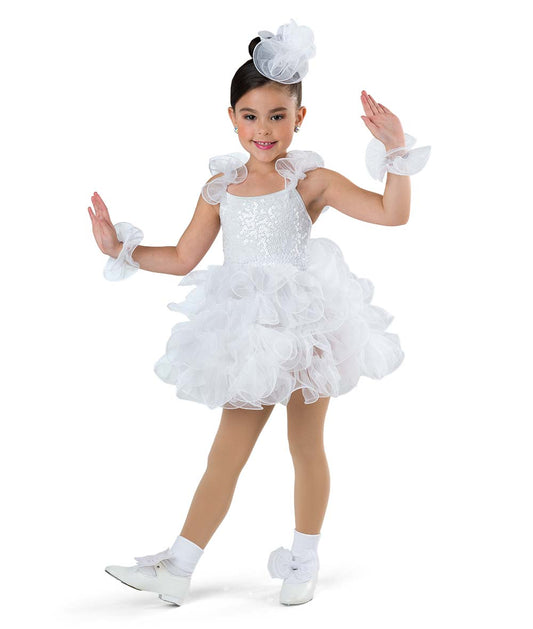 H676Y Snow Day – White Holiday Dance Costume with Curly Organza Tutu
