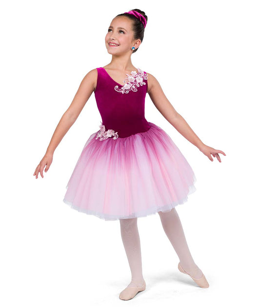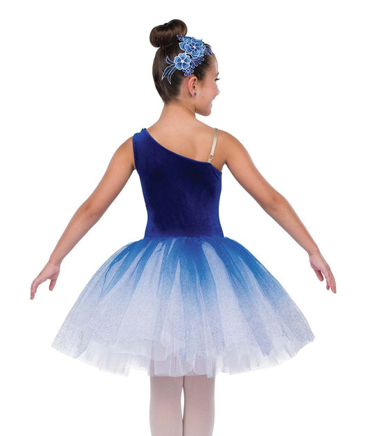 24139Y La Danse – Royal Blue Velvet Ballet Costume with Floral Appliqué and Glitter Tutu