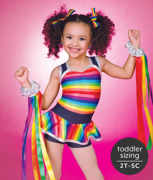 C106 Technicolor – Rainbow Sequin Spandex Dance Costume Leotard with Cutout Midriff & Back Bustle for Competition, Recital & Stage Performance