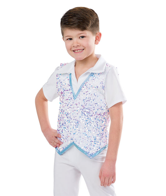 H603 Marshmallow World Boy Top – Boys Holiday Dance Top with White Sequin Vest