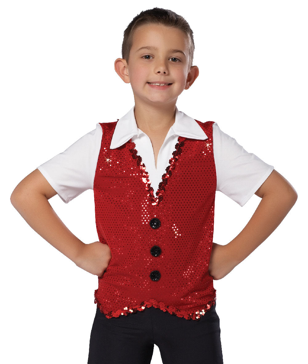 11358 Vested Shirt – Boys' Pullover Dance Shirt with Sequin Vest Look for Jazz and Holiday Performances