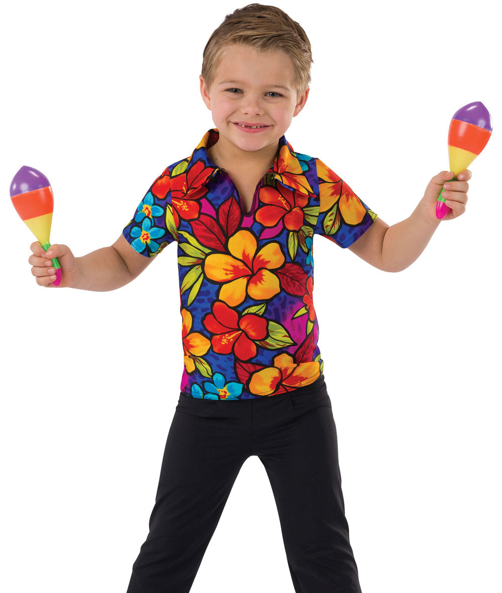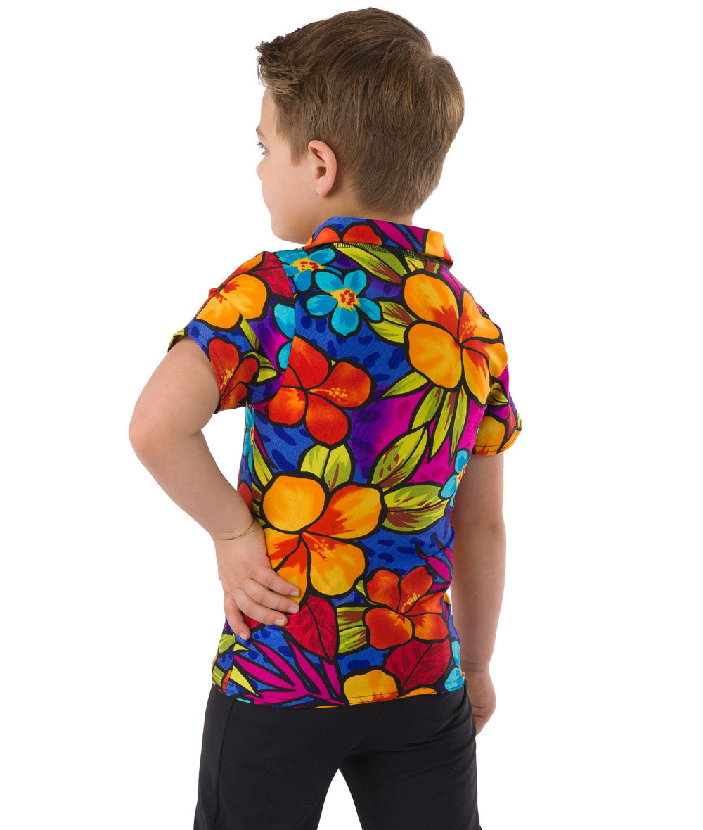Floral print spandex collared shirt. Pants sold separately. Made in the USA.