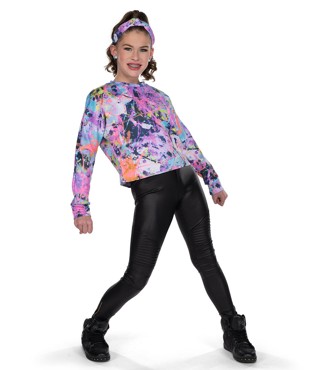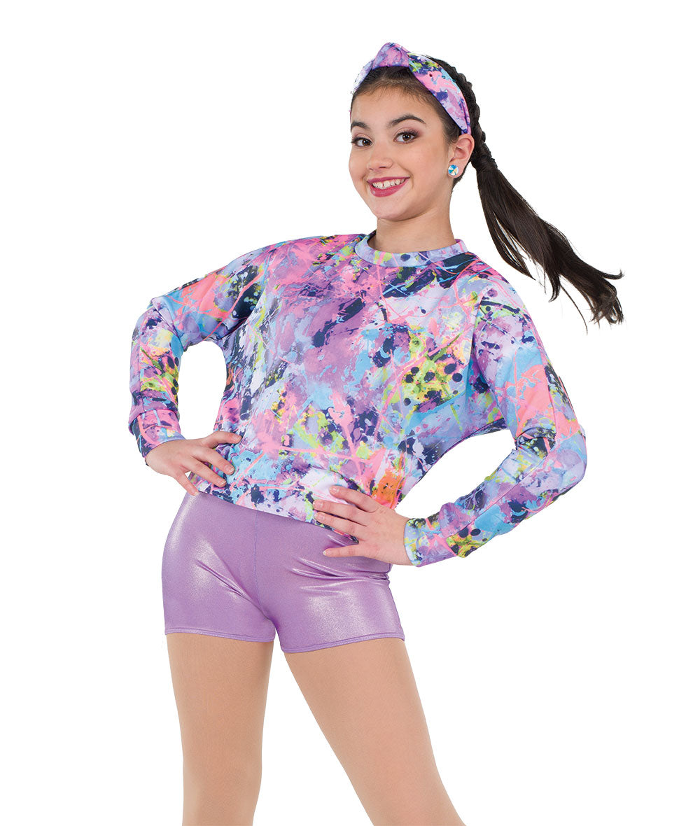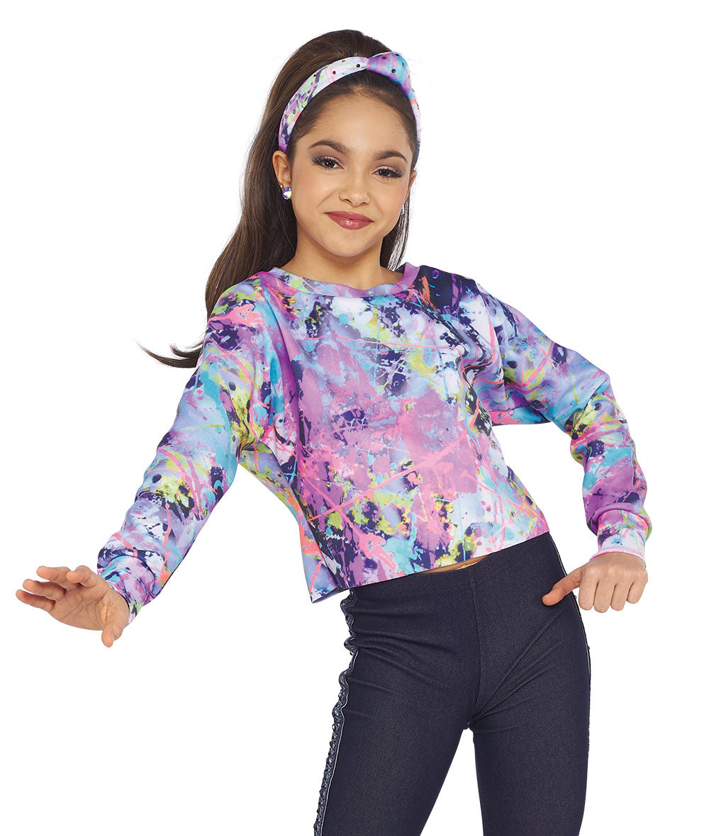 Tie-dye double knit long sleeve top. Size up for boxier fit. Bottoms sold separately. Imported.
