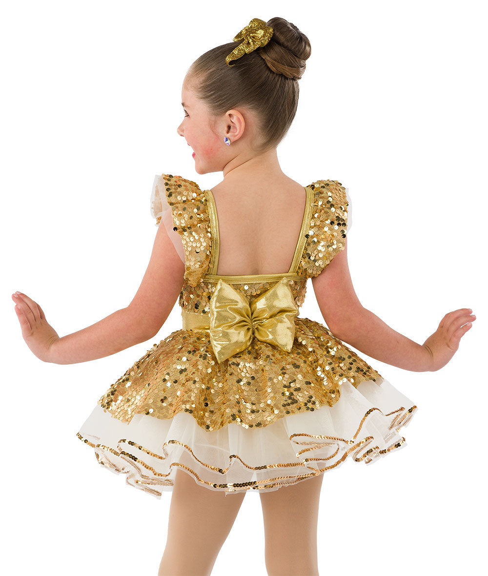21861 Something I Want – Gold Sparkle Ballet Costume with Bow and Organza Tutu