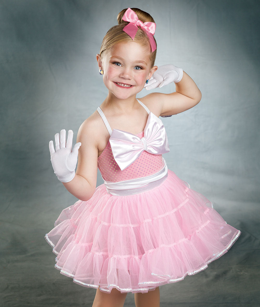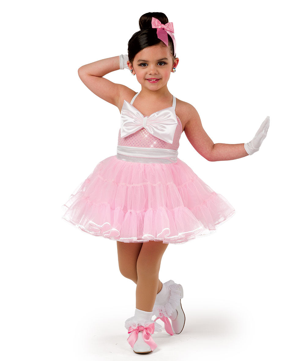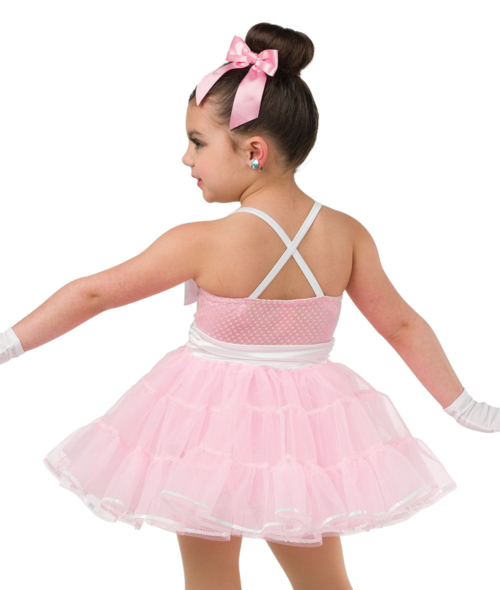 Sequin dot velvet and spandex leotard with stretch satin bow and waistband. Attached sequin trimmed organza crinoline. Accessories sold separately. Imported.