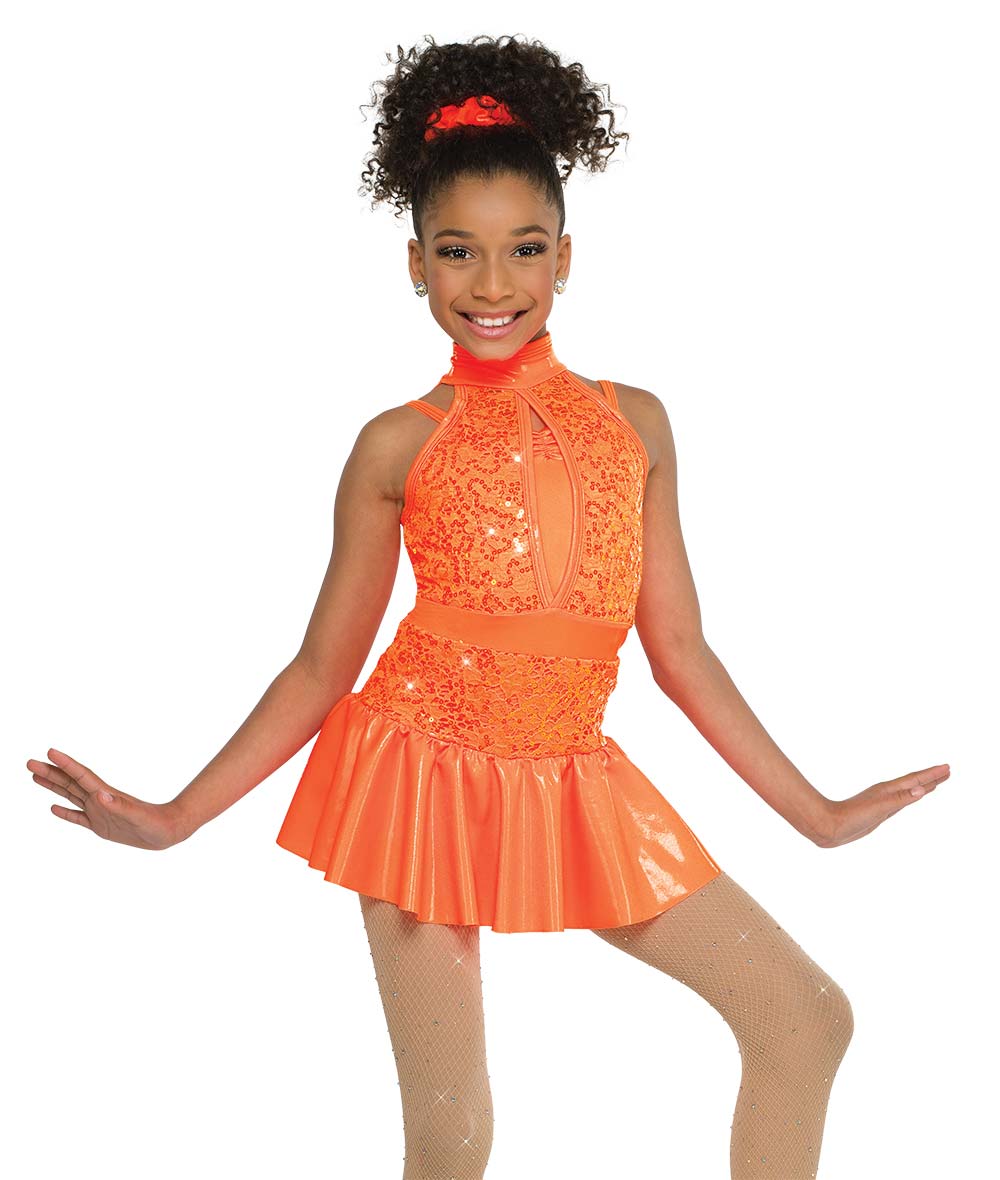 Model in 92 Glo Orange Is shown wearing size Medium Child.