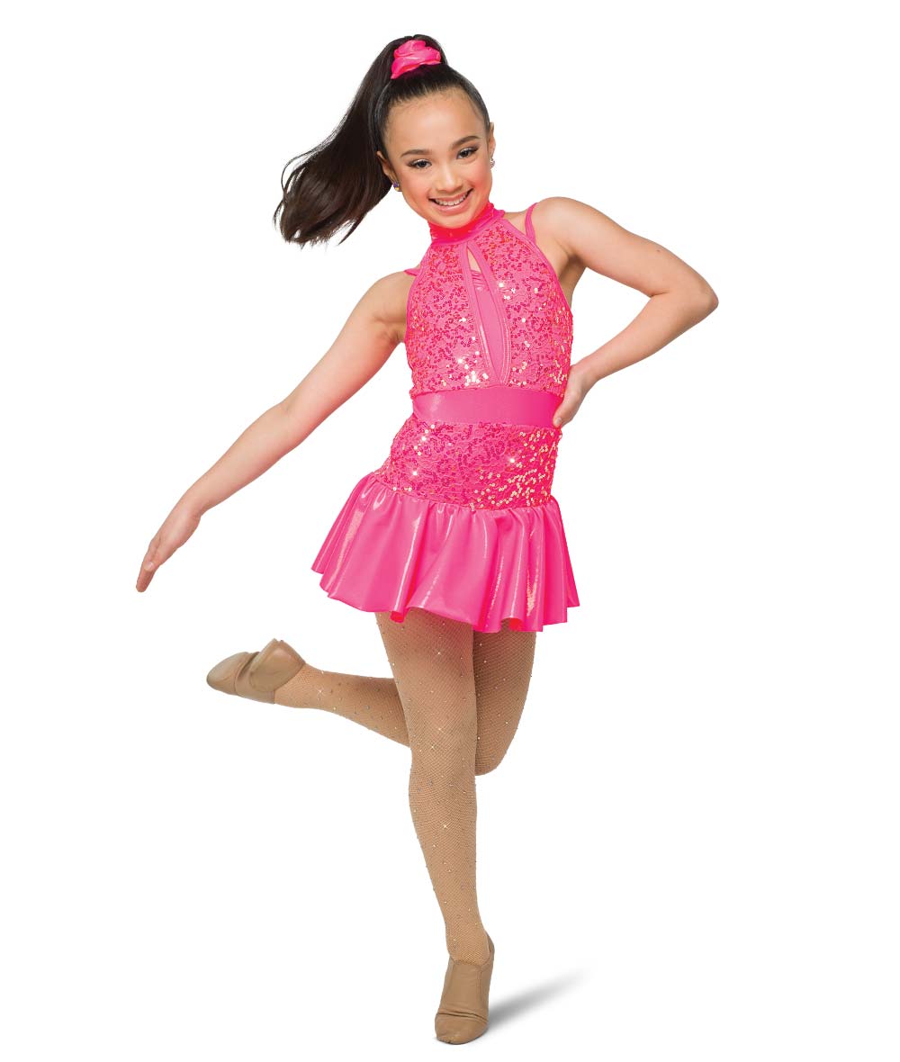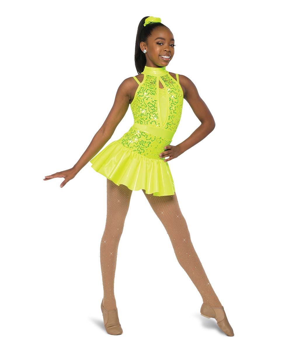 Lined sequin lace and foil lycra dress over attached hot pants. Made in the USA.