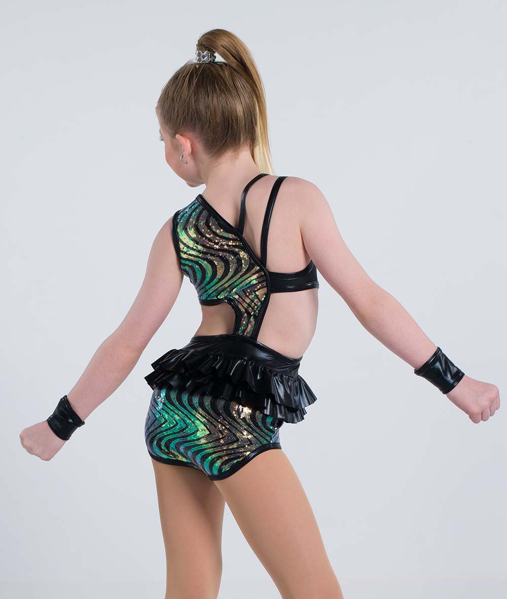 C107 Unbroken – Wavy Sequin Spandex Foil Dance Costume Leotard with Ruffle Skirt for Competition, Recital & Stage Performance