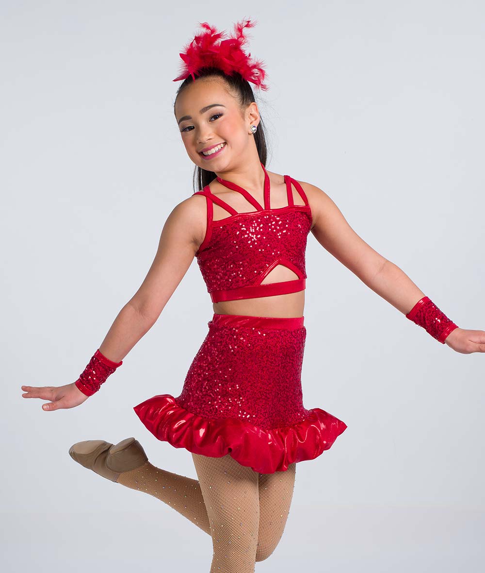 C112 Kick Up Your Heels – Sequin Spandex Dance Costume Crop Top & Bubble Skirt with Hot Pants for Competition, Recital & Stage Performance