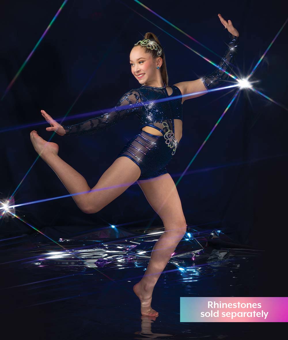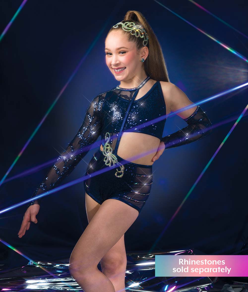 C119 Tension – Sequin One-Sleeve Dance Costume Leotard with Rhinestone Applique for Competition, Recital & Stage Performance