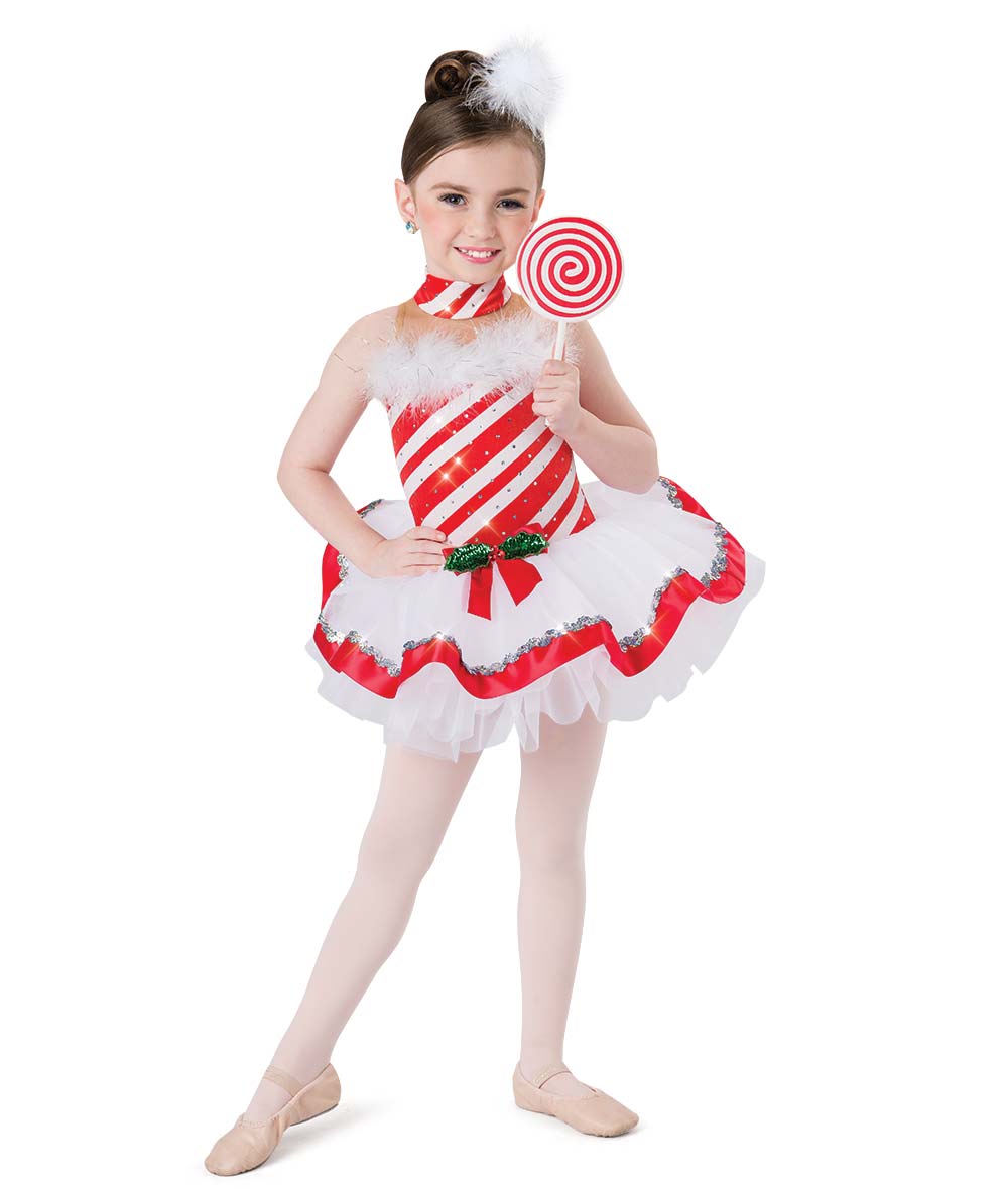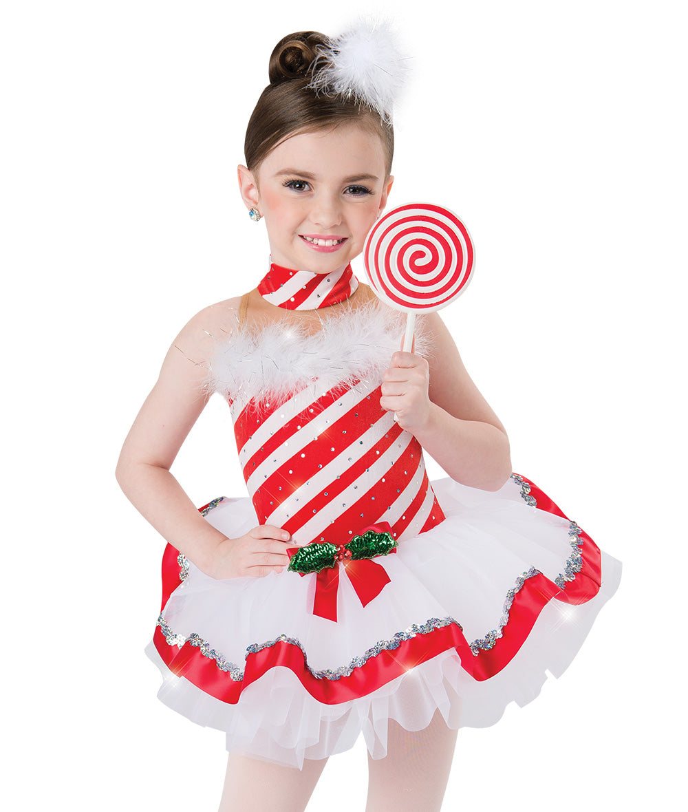 H533Y Peppermint Cane Short Tutu – Holiday Striped Leotard with Red & White Tutu