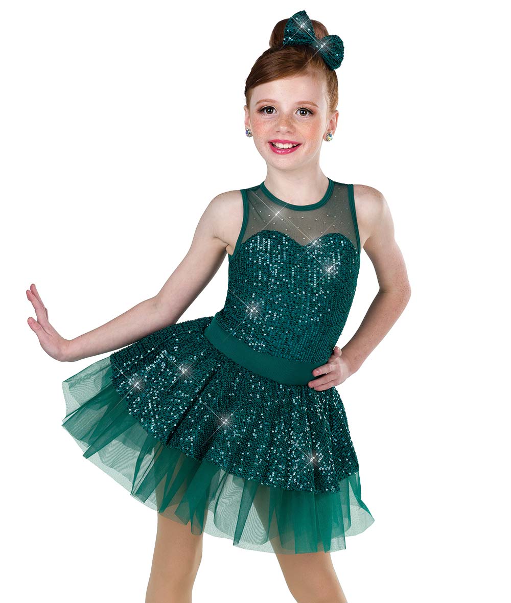 Sparkle your way into the holiday season with the H696Y Ring Out the Bells, a festive and elegant costume perfect for Christmas recitals, jazz or ballet routines, and winter group performances. This beautifully crafted dress features lined sequin mesh and spandex, topped with a rhinestone-studded mesh yoke for a touch of graceful shimmer.